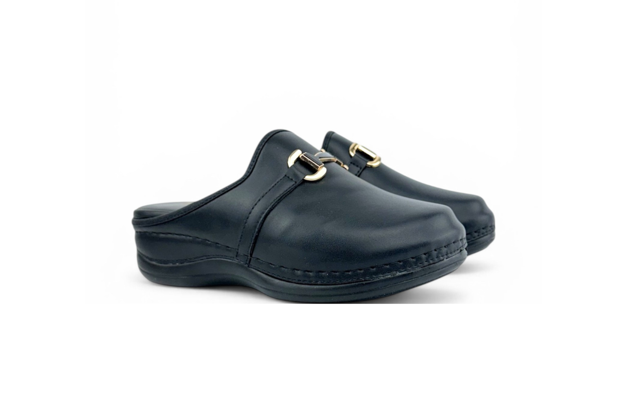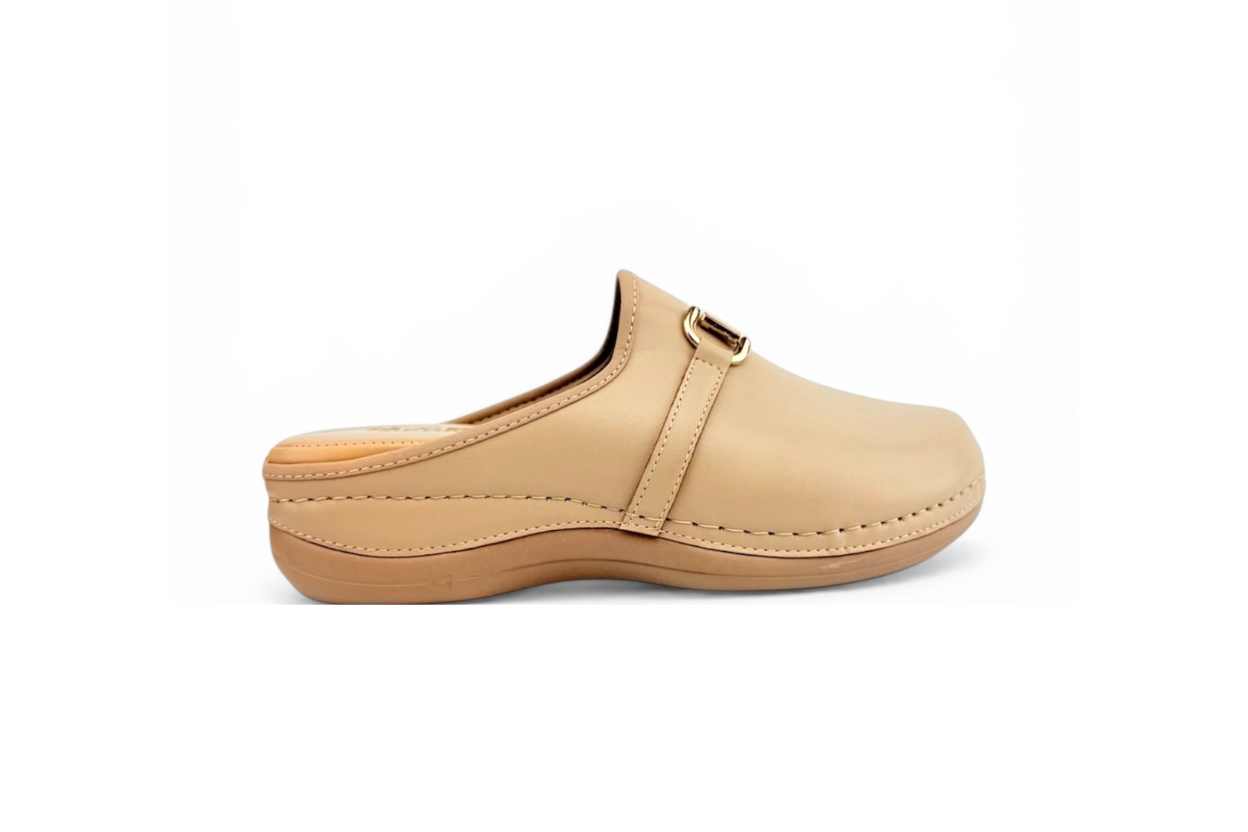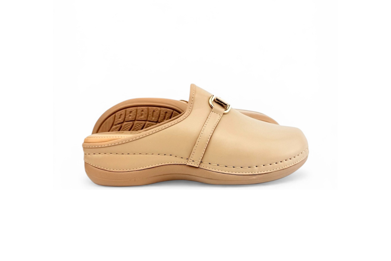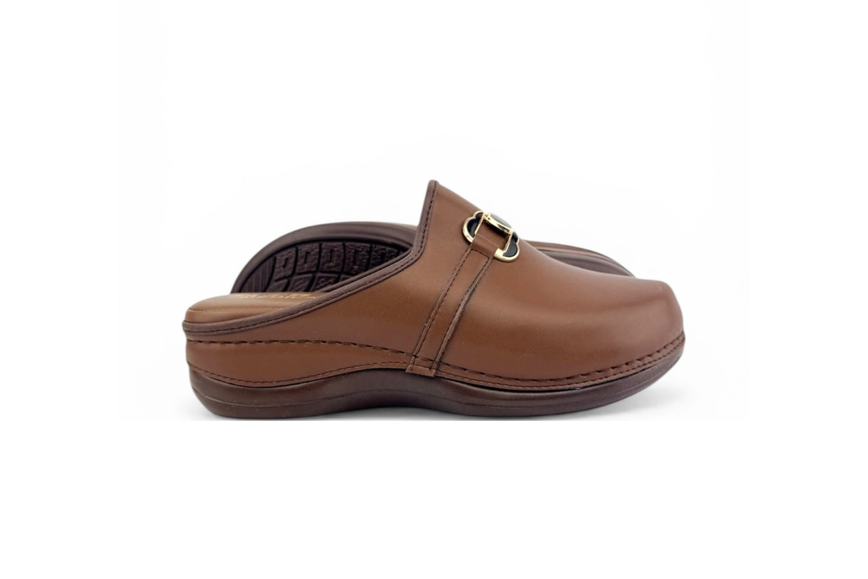 Sabot femme élégant et confortable, au design marron intemporel avec boucle dorée raffinée. Facile à enfiler, il offre un excellent maintien et une semelle résistante pour un confort optimal au quotidien.