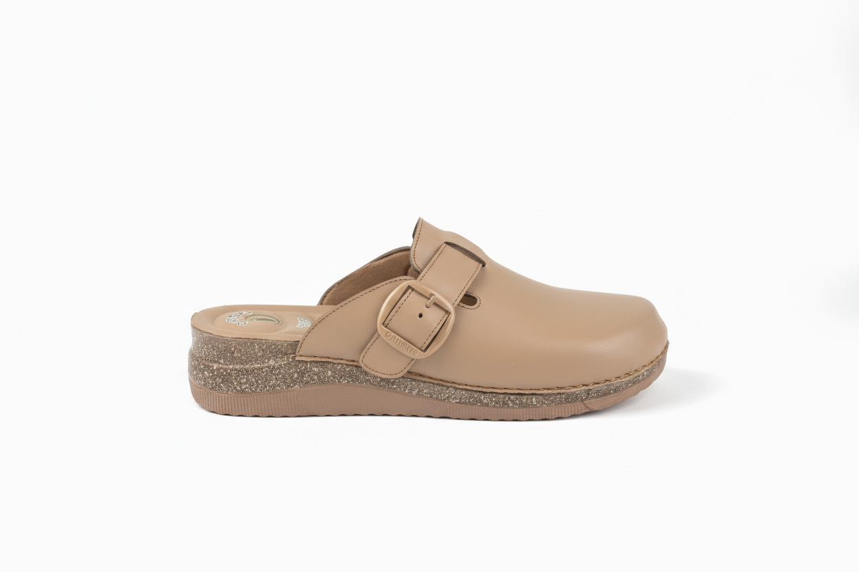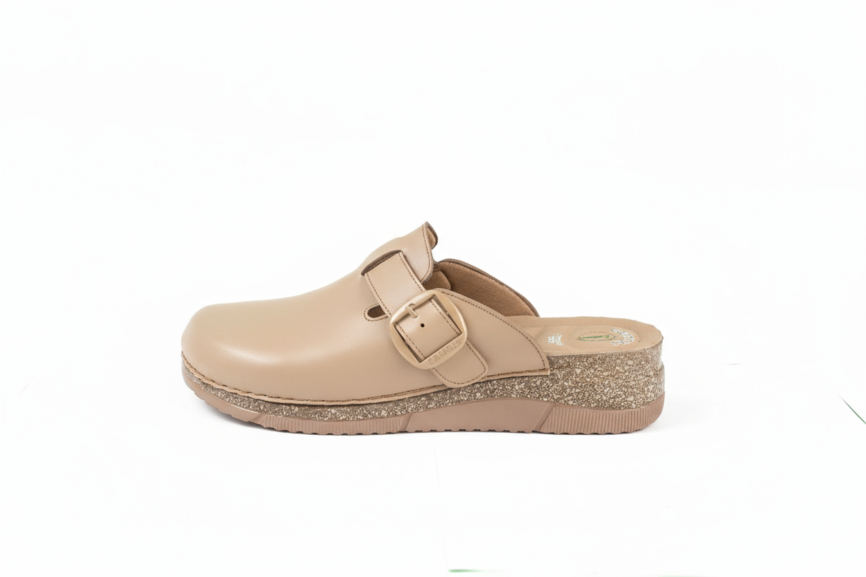 sabot mules medicales en cuir camelle confort pour femme à mors métallique