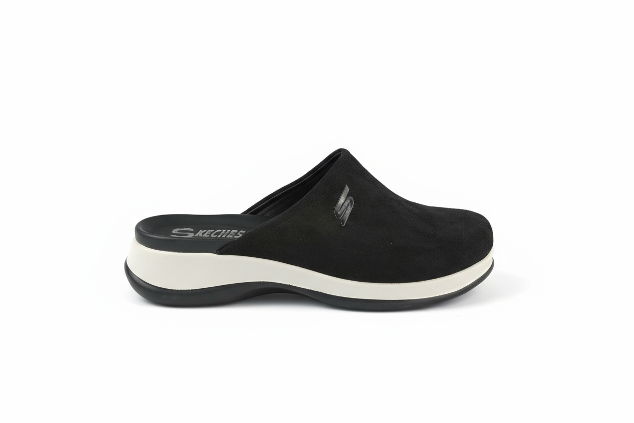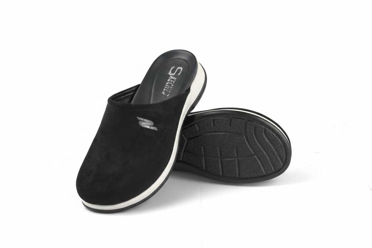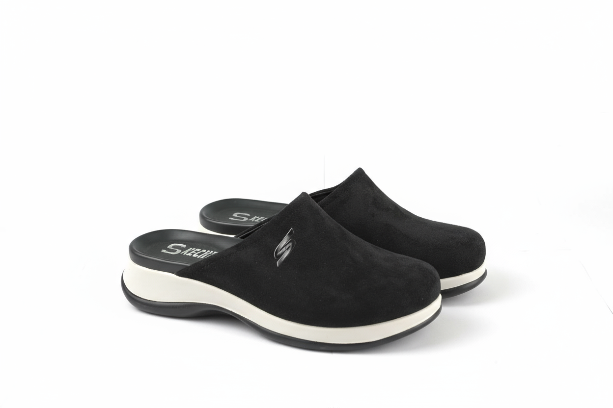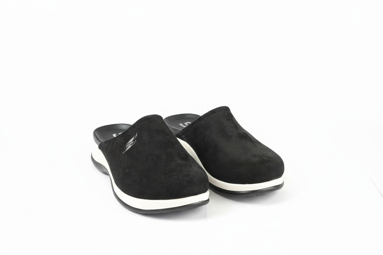 Sabot Mules Confort noir en Daim à semelle medicales plateforme blanche