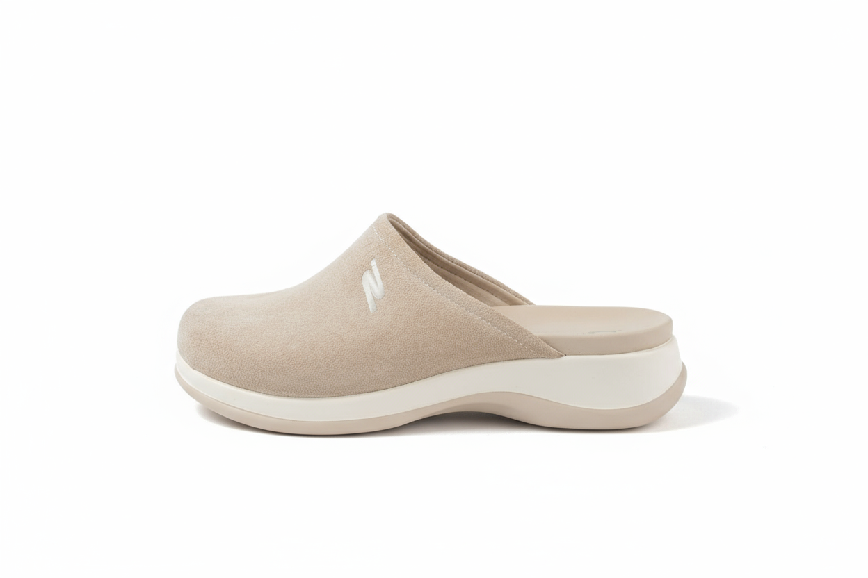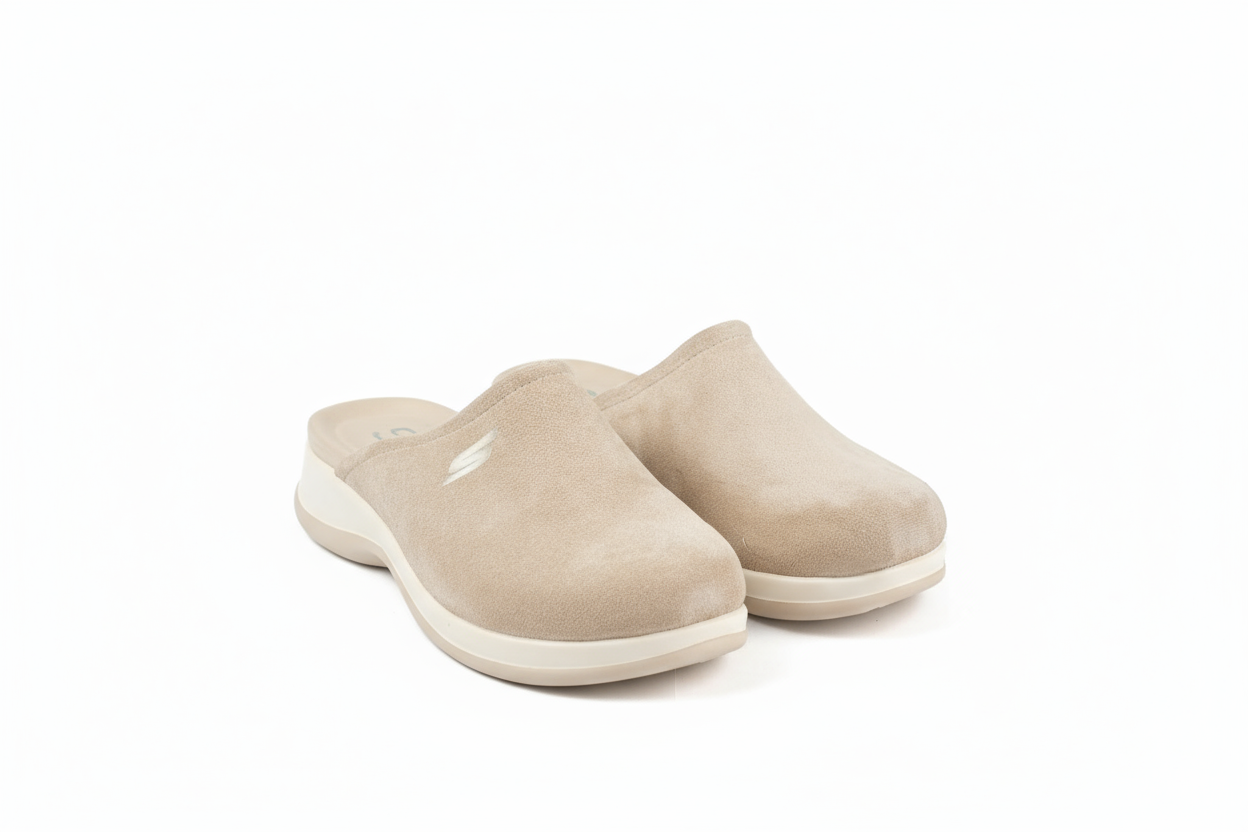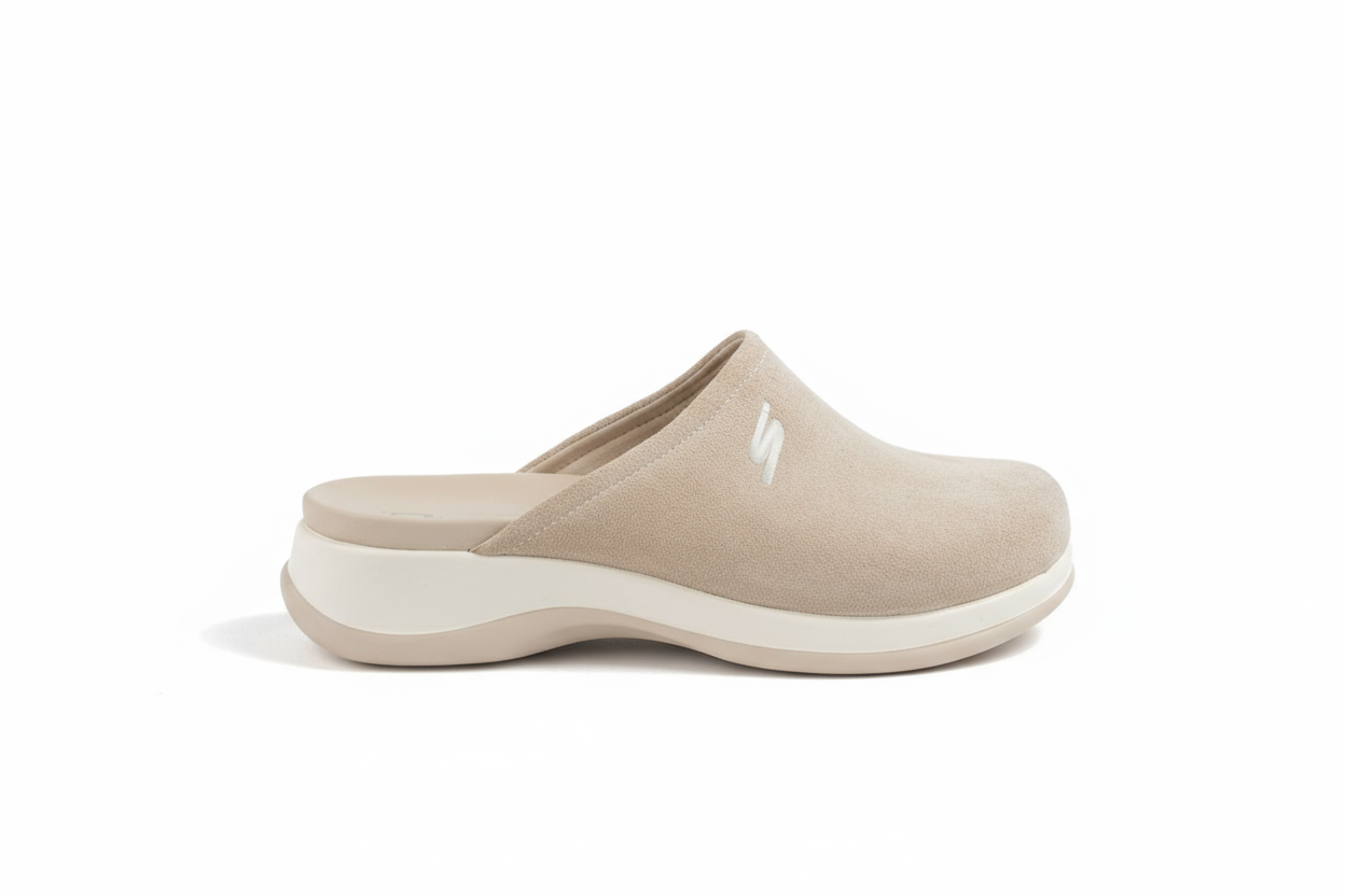 Sabot Mules Confort beige en Daim à semelle medicales plateforme blanche