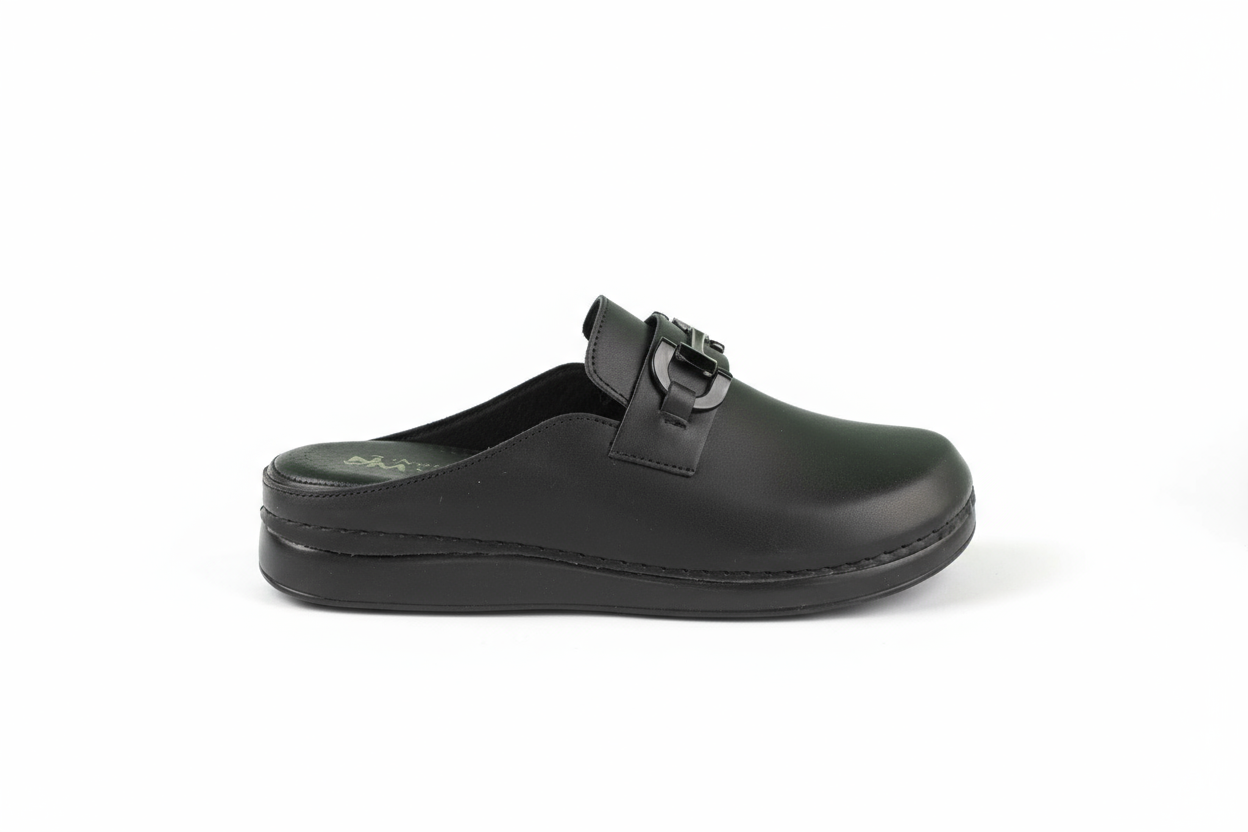 sabot mules medicales noires confort pour femme à mors métallique