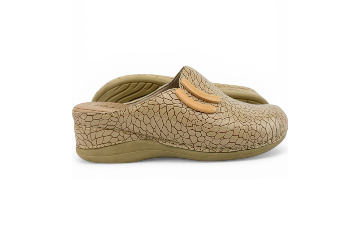 Sa forme ergonomique épouse parfaitement le pied, offrant un excellent maintien et un confort durable tout au long de la journée. La semelle résistante assure une bonne stabilité, idéale pour une utilisation à la maison comme à l’extérieur.